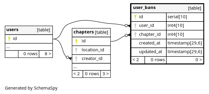 | id | serial | 10 | √ | nextval('user_bans_id_seq'::regclass) |